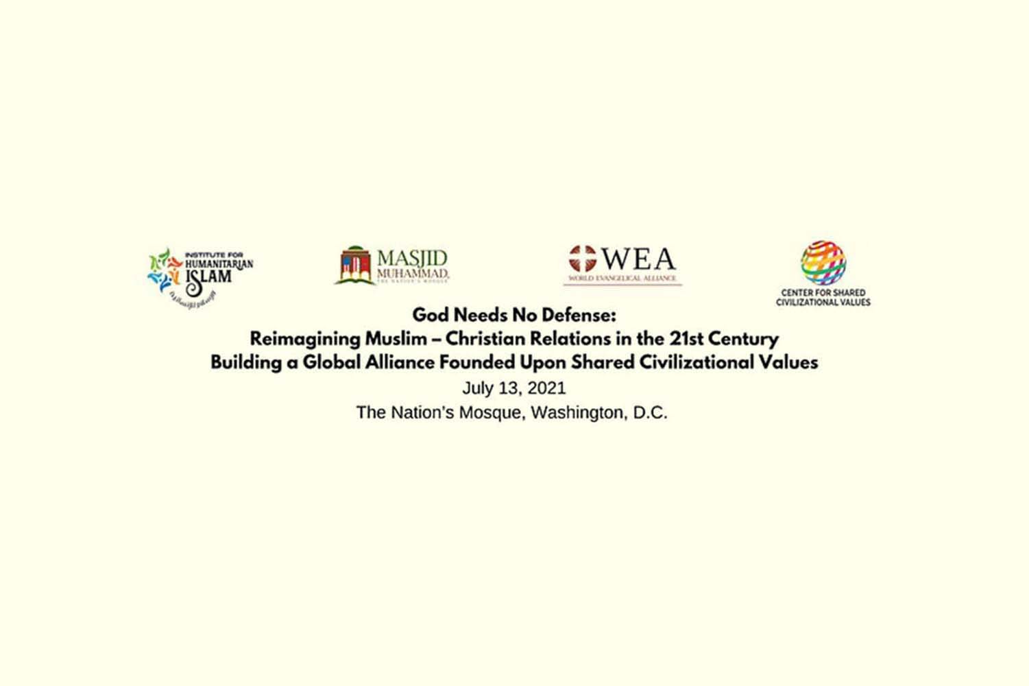 Untuk informasi lebih lanjut tentang mitra acara ini, klik tautan yang disediakan: Nahdlatul Ulama, organisasi Muslim terbesar di dunia; Institute for Humanitarian Islam; Masjid Muhammad, The Nation’s Mosque; World Evangelical Alliance; dan Center for Shared Civilizational Values.