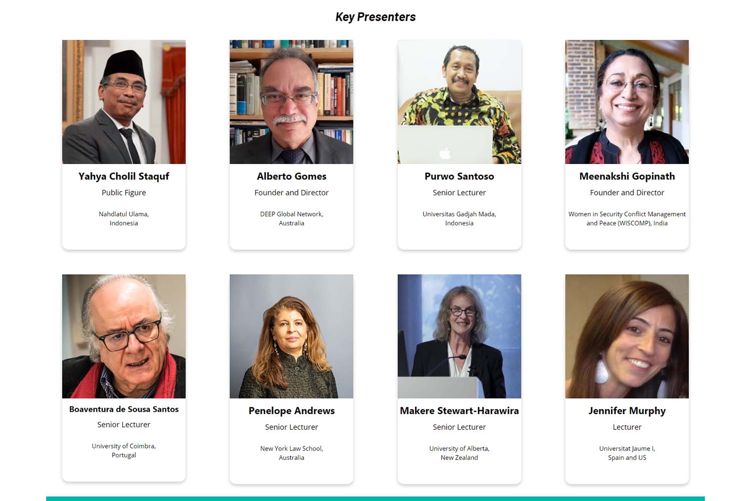 Mengutip publikasi resmi organisasi penyelenggaara program, yakni DEEP Network Indonesia, beberapa penyaji utama (key presenter) yang akan terlibat dalam sekolah ini adalah: Yahya Cholil Staquf, Katib Aam Pengurus Besar Nahdlatul Ulama (PBNU), Indonesia; Alberto Gomes, Pendiri dan Direktur DEEP Global Network, Australia; Purwo Santoso, Dosen Senior Universitas Gadjah Mada, Indonesia; Meenakshi Gopinath, Pendiri dan Direktur Women in Security Conflict Management and Peace (WICOMP), India; Boaventura de Sousa Santos, Dosen Senior University of Coimbra, Portugal; Penelope Andrews, Dosen Senior New York Law School, Australia; Makere Stewart-Harawira, Dosen Senior University of Alberta, New Zealand; serta Jennifer Murphy, Dosen Universitat Jaume I, Spanyol dan Amerika.
